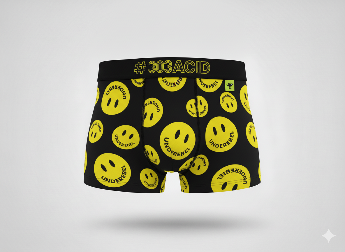 Keywords: acid house boxers, 303 rave apparel, EDM underwear, comfortable boxer briefs, non-conformist fashion.